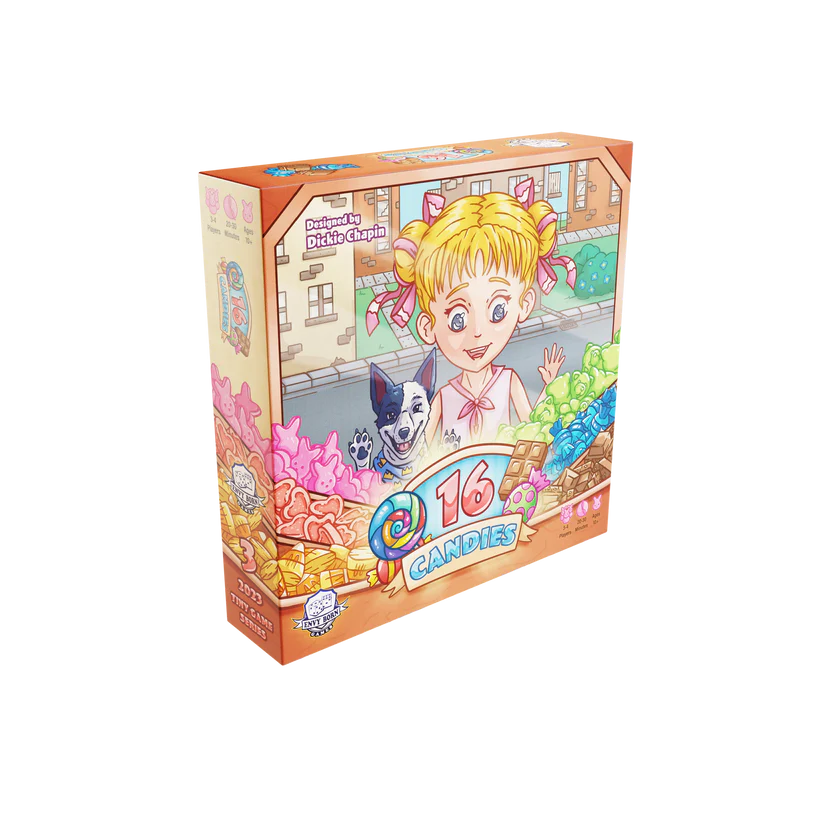 The game ends when only one player has candy left in their supply, and that player is the winner. With quick turns and a fun theme, 16 Candies is a tasty treat for game nights with family and friends.