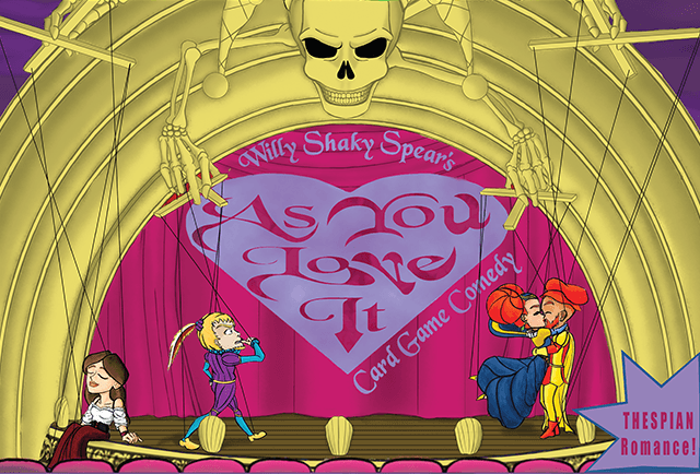 It's time for the annual contest of the cupids! The cupids have come to a local high school and will compete to be crowned the champion matchmaker. Each player has a set of couples to match. Make the hookups by lining the couples' hearts together. By using cards from your hand, you can spin, shift, and swap the character cards to achieve victory! Willy ShakySpear's AS YOU LOVE IT is a card game romantic comedy with hilarious twists behind every card. Fall in love with Touchstone, Phoebe, Silvius and the whole cast!
