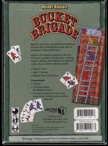 The new Bucket Brigade edition by Face 2 Face Games uses the exact same rules, score levels on the racetrack, and card distribution as the original, but instead of Honeybears, the racing tokens are firemen ascending a ladder.