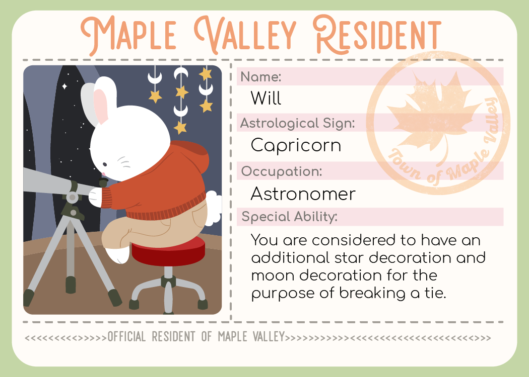 You’ve come to visit Maple Valley at a very special time - the Night Sky Party is approaching! Play as a bunny furiously trying to decorate for the party and have the honor of hosting.