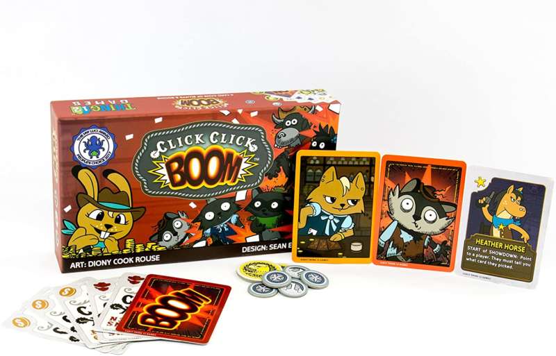 Click Click Boom is a bluffing game of Russian Roulette, where a group of western animals compete for the most money.