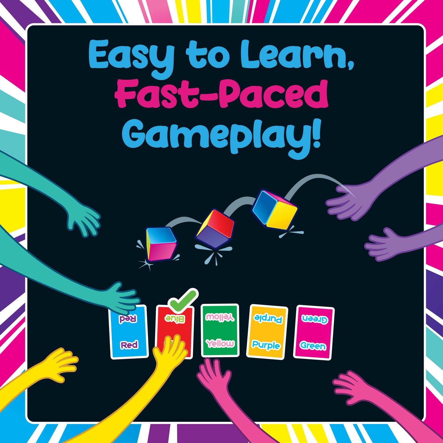 Be the first to grab the card(s) that correctly match the color the die landed on to score points.