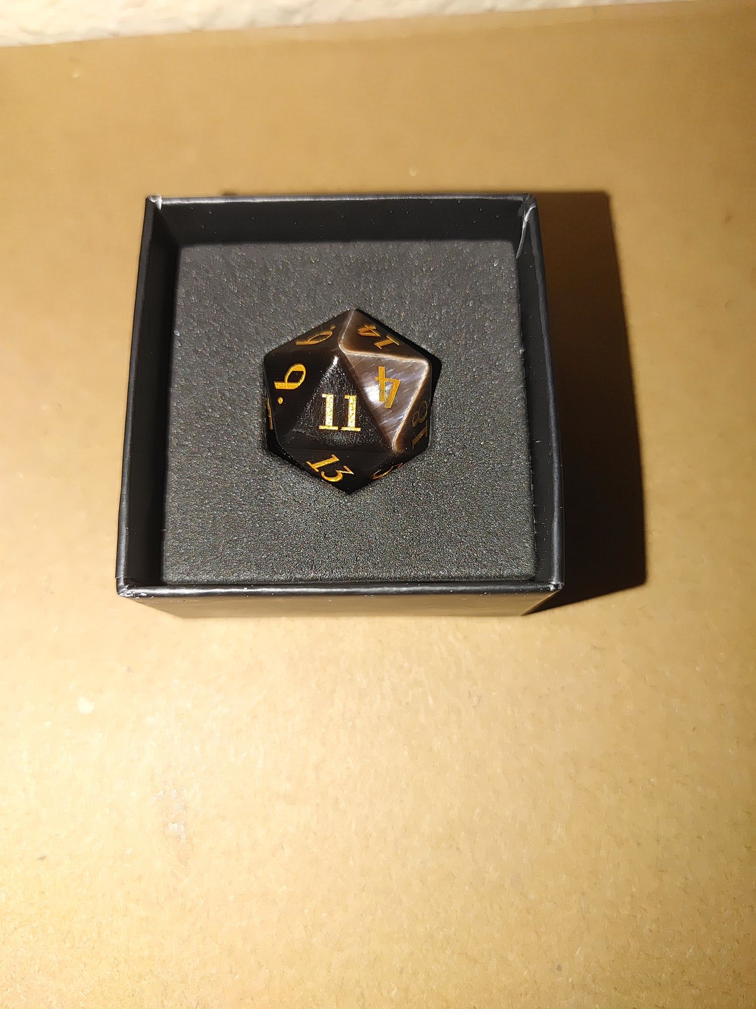 Step boldly into the unknown with the Divine D20 Mystery Stone/Glass Dice. This captivating die challenges your fate with every roll, blending mystery and daring into a single, striking design. Perfect for players who thrive on risk and unpredictability, it transforms your game into an electrifying adventure where every outcome counts. Embrace the thrill and let the dice decide your destiny.