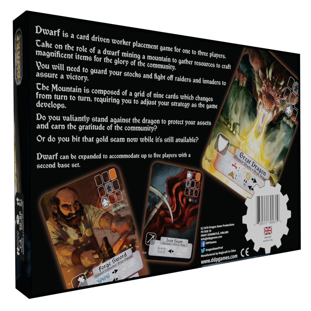 Dwarf is a competitive worker-placement and resource-management game, which is played on a dynamic, modular board. It may also require some subtle cooperative play against common enemies.