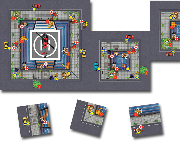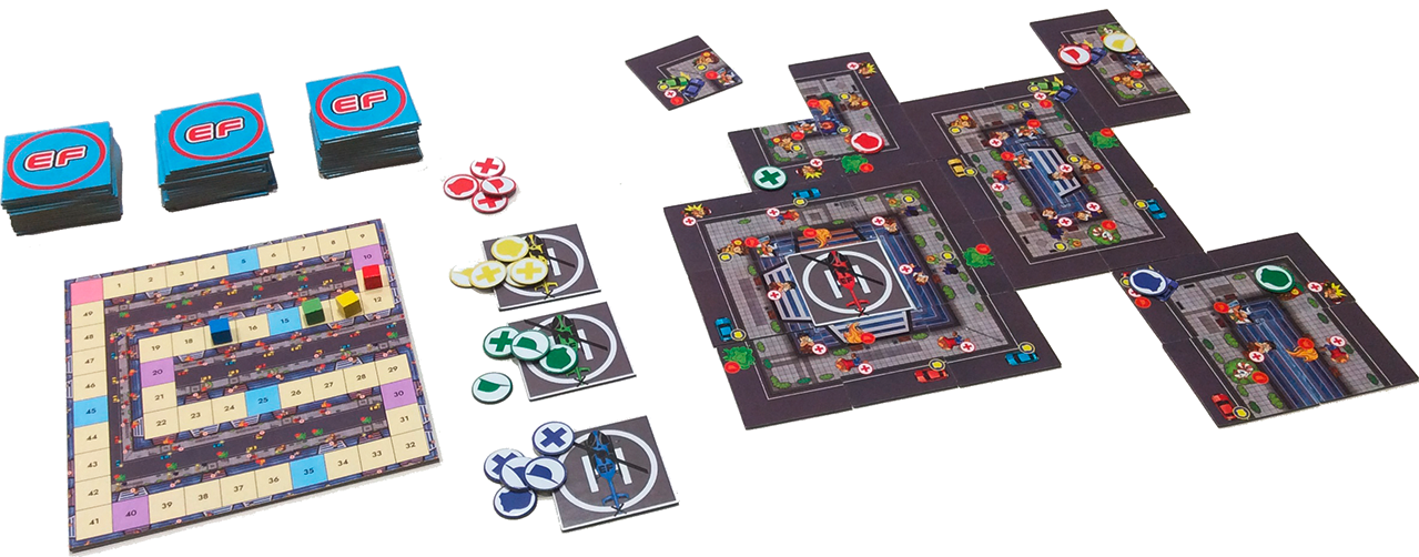Emergency Force is a tile placement game in which players seek to deploy their emergency response teams (police, medical and fire) to where they are most needed. Players construct the city by placing tiles, each of which contains one or more incidents worth points to any response team deployed to that block. Each type of team scores points differently and the player with the most points at the end of the game wins.