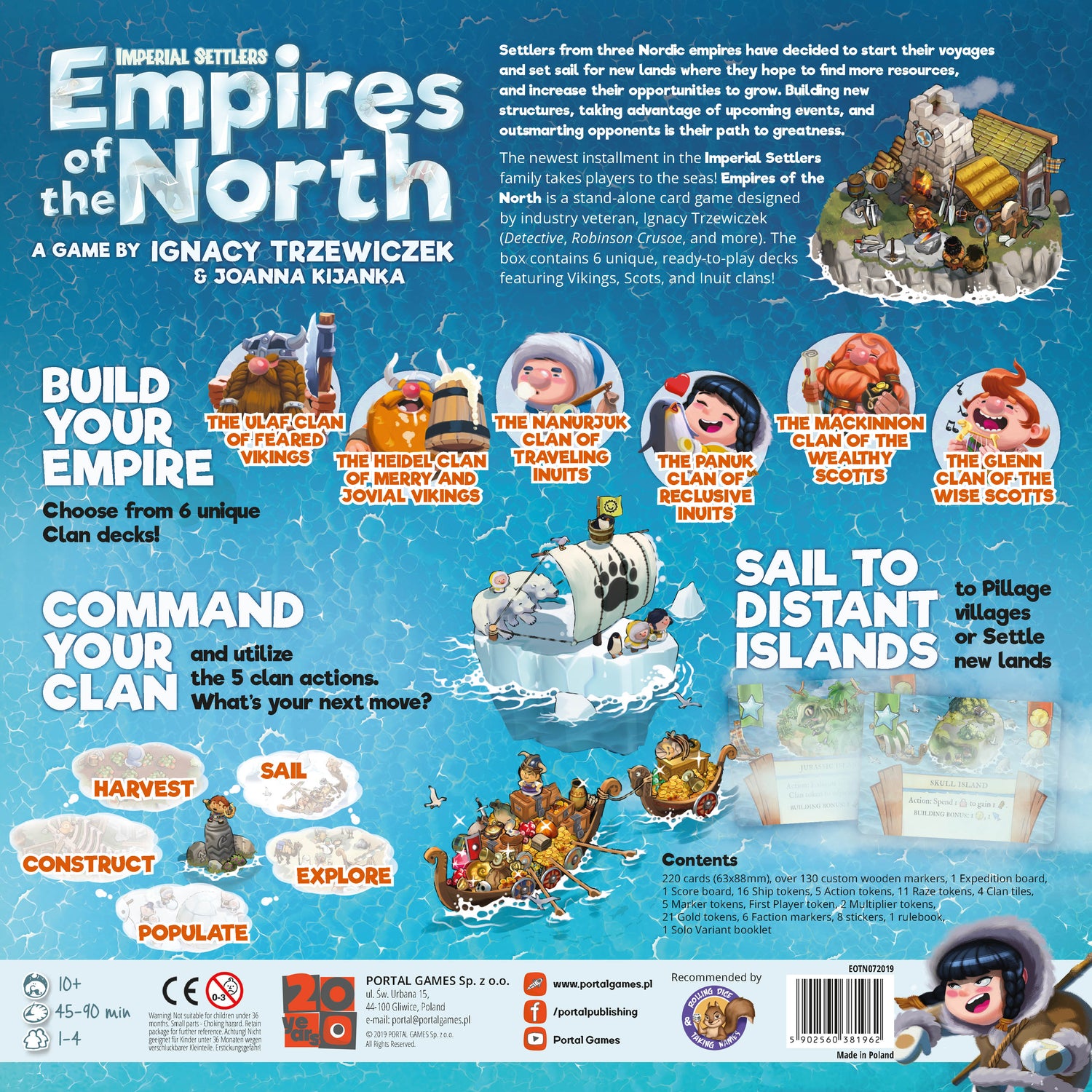 Imperial Settlers: Empires of the North is a new, standalone card game in the established Imperial Settlers universe designed by industry veteran Ignacy Trzewiczek (Detective, Robinson Crusoe). The box contains 6 unique, ready to play decks featuring Vikings, Scots and Inuit clans. Take on the role of leader, and make your faction into the best empire in the world!