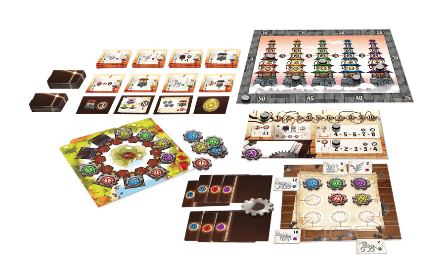 As a master mechanist in Jigūan: The Eastern Mechanist, it is your job to acquire parts, obtain energy, improve your skills and complete your creation. Your goal is to advance your place in the Five Pagodas, by creating unique mechanical beasts. Your creations not only bring you honor but also contribute to the advancement of Eastern civilization.