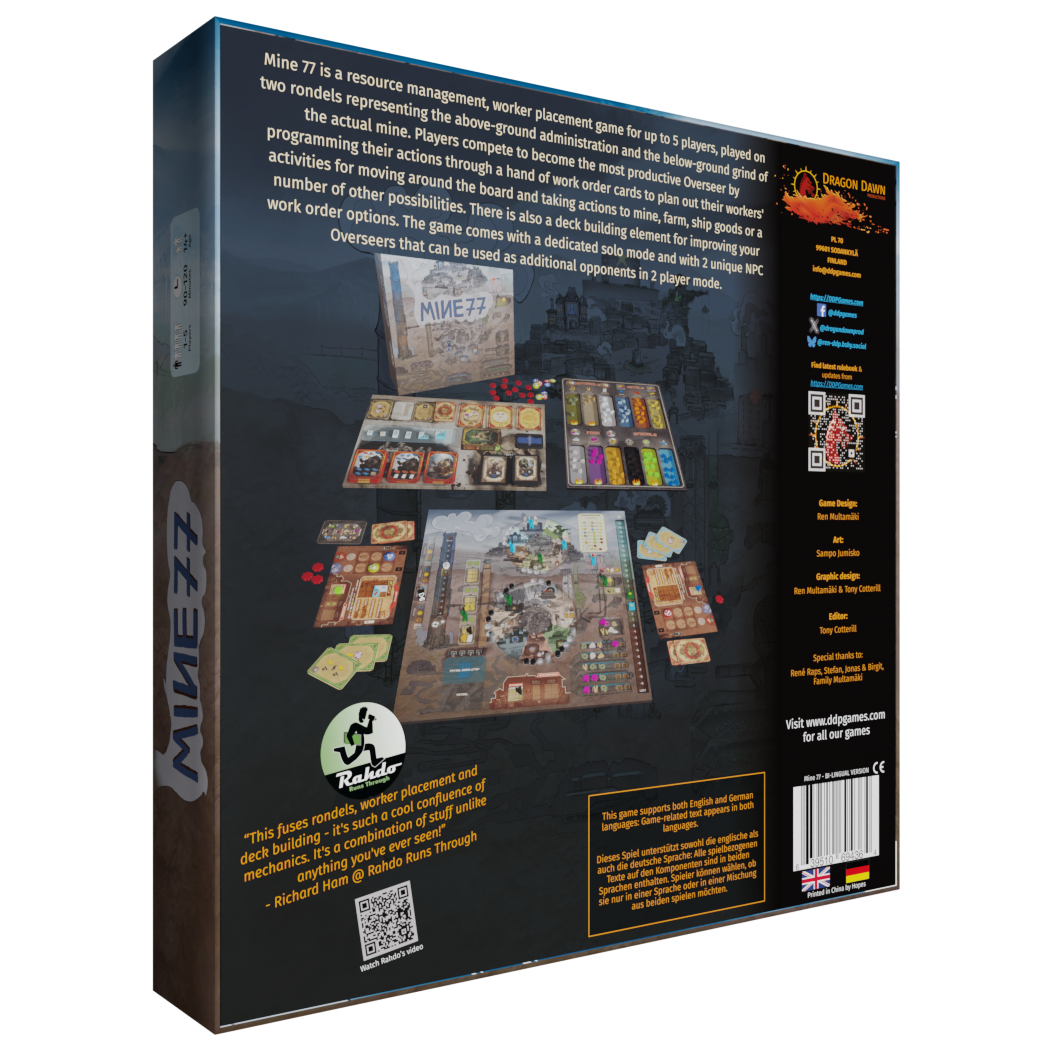 Mine 77 seamlessly weaves the theme into each game mechanic, requiring players to select their path to victory. Since there are a limited number of actions available, you can't pursue every option. The path you choose may differ significantly from the paths chosen by your opponents. Every game will offer a fresh new challenge for the players.