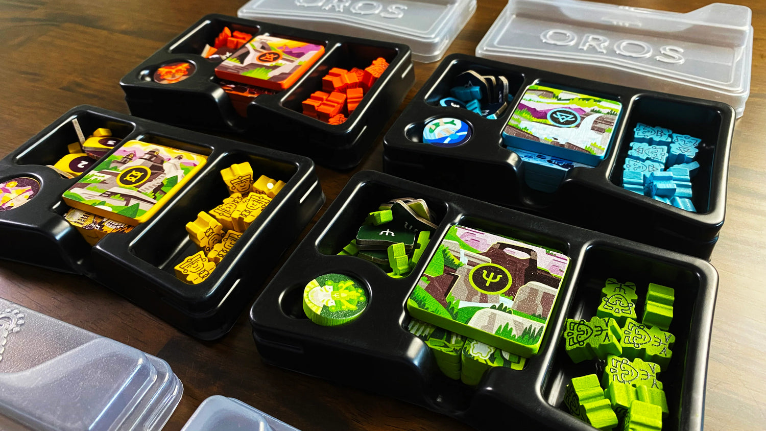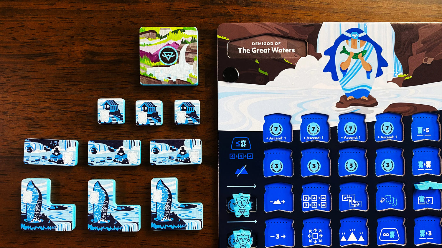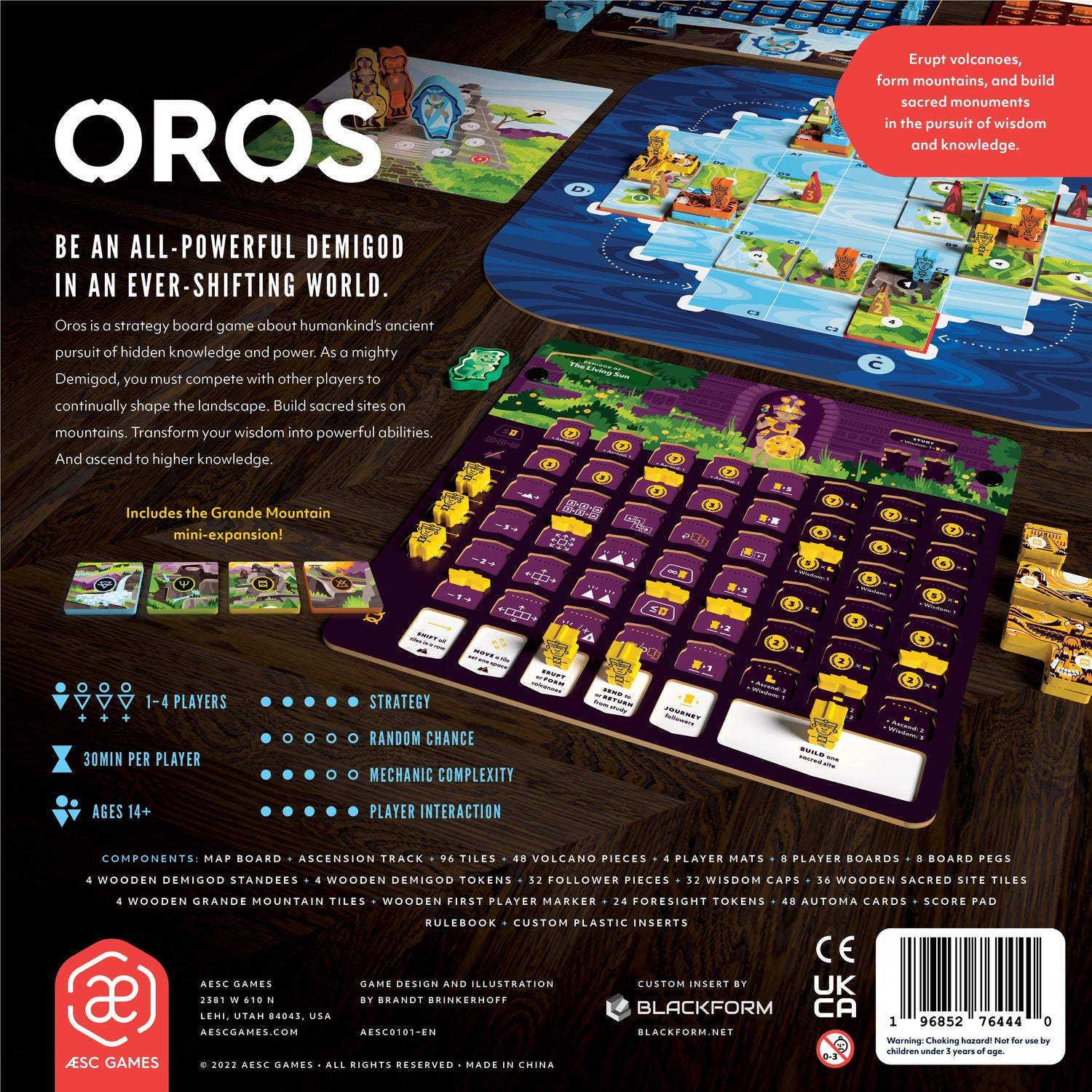 Oros is a strategy board game about humankind’s ancient pursuit of hidden knowledge and power. As a mighty Demigod, you must compete with other players to continually shape the landscape. Build sacred sites on mountains. Transform your wisdom into powerful abilities. And ascend to higher knowledge.