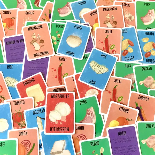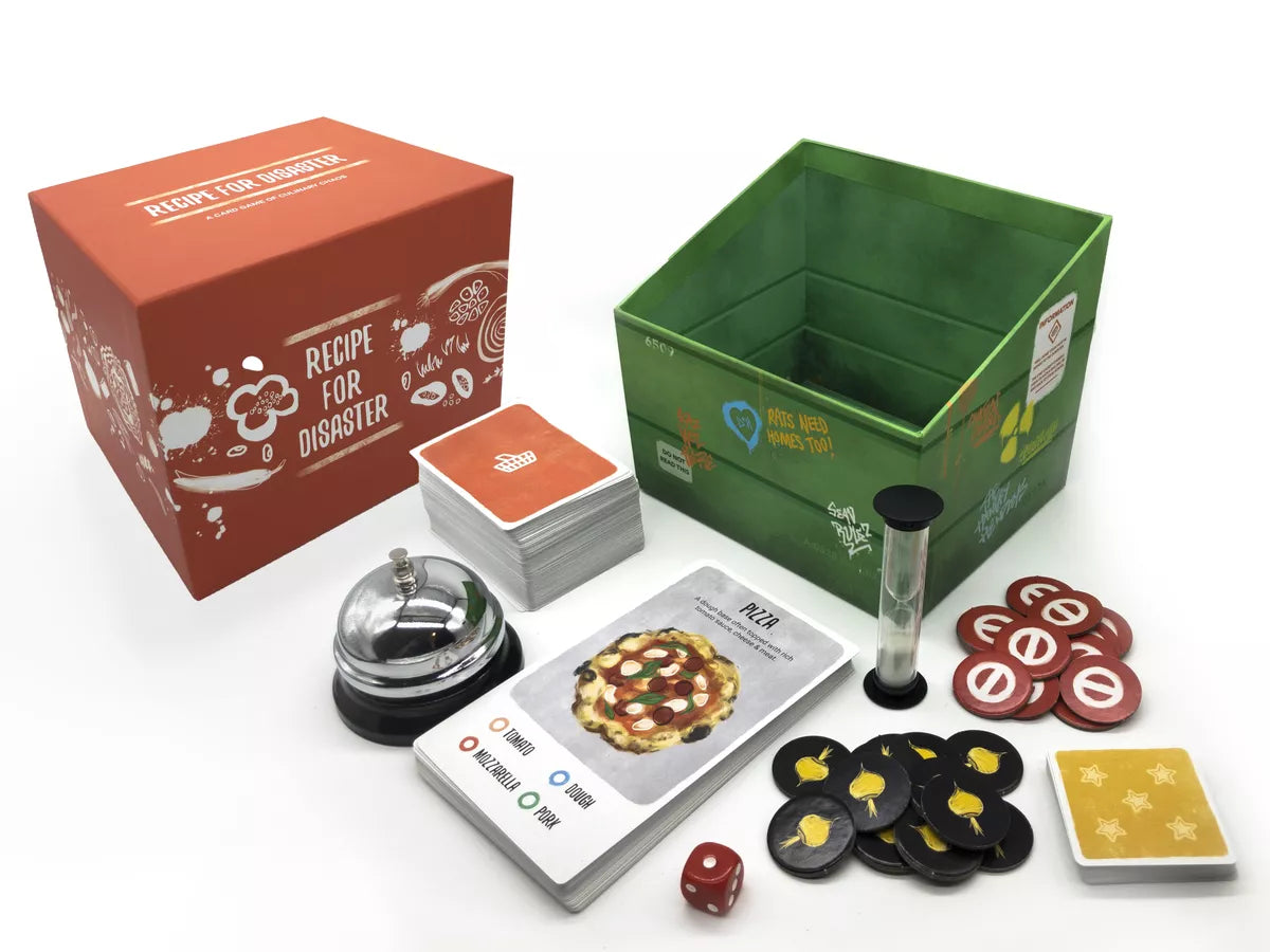 Recipe for Disaster is a new set collection card game with a twist where you will be collecting the necessary ingredients for a dish by any means necessary - Even a hectic, timed dumpster dive!