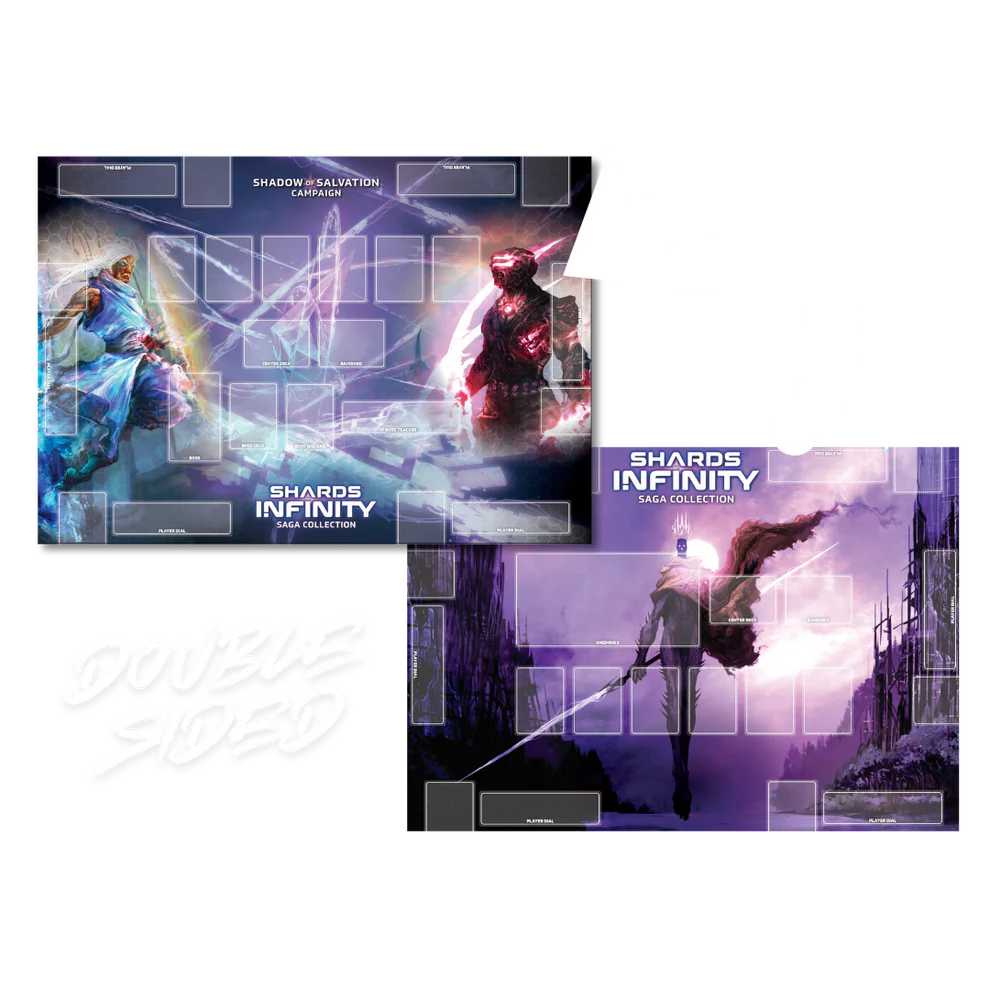This stunning playmat features dedicated sections for efficiently arranging and laying out cards for solo, PVP, and co-op modes. It's the perfect companion for the Shards of Infinity Saga Collection designed to help new players learn the game and to protect your cards from damage.