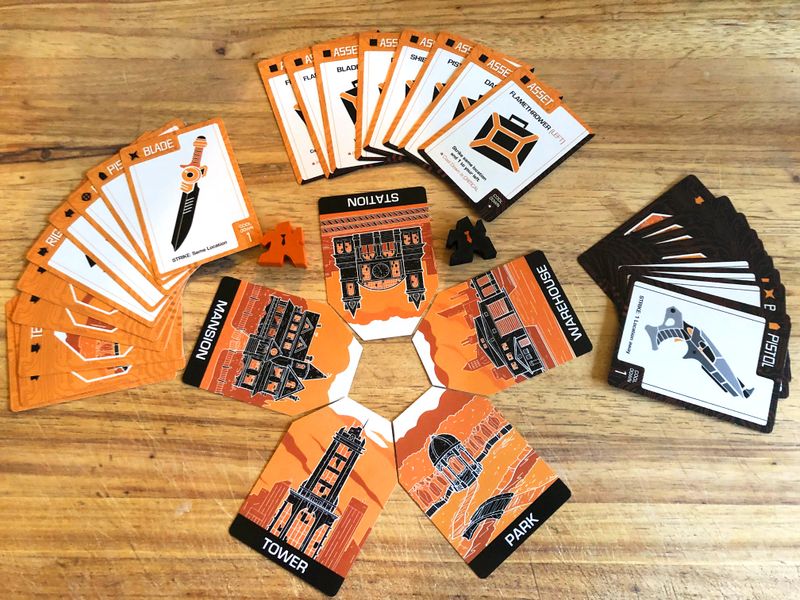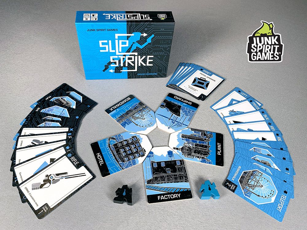 Slip Strike is normally a two-player game, but by combining the blue and orange editions — each of which has different art and asset cards — you can play with up to four in the same game.