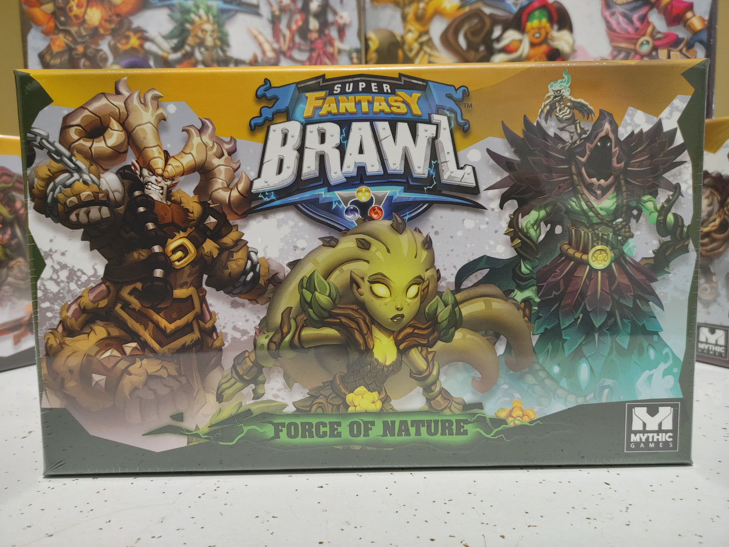 Super Fantasy Brawl is a fun, fast-paced competitive miniatures board game. Players select a team of three champions and combine their unique action cards to create a synergistic action deck. The game is faction-free, so players have their choice of any combination of champions they wish. Each turn, the players use their hand of action cards to maneuver, attack, displace enemies, and claim objectives to score victory points.