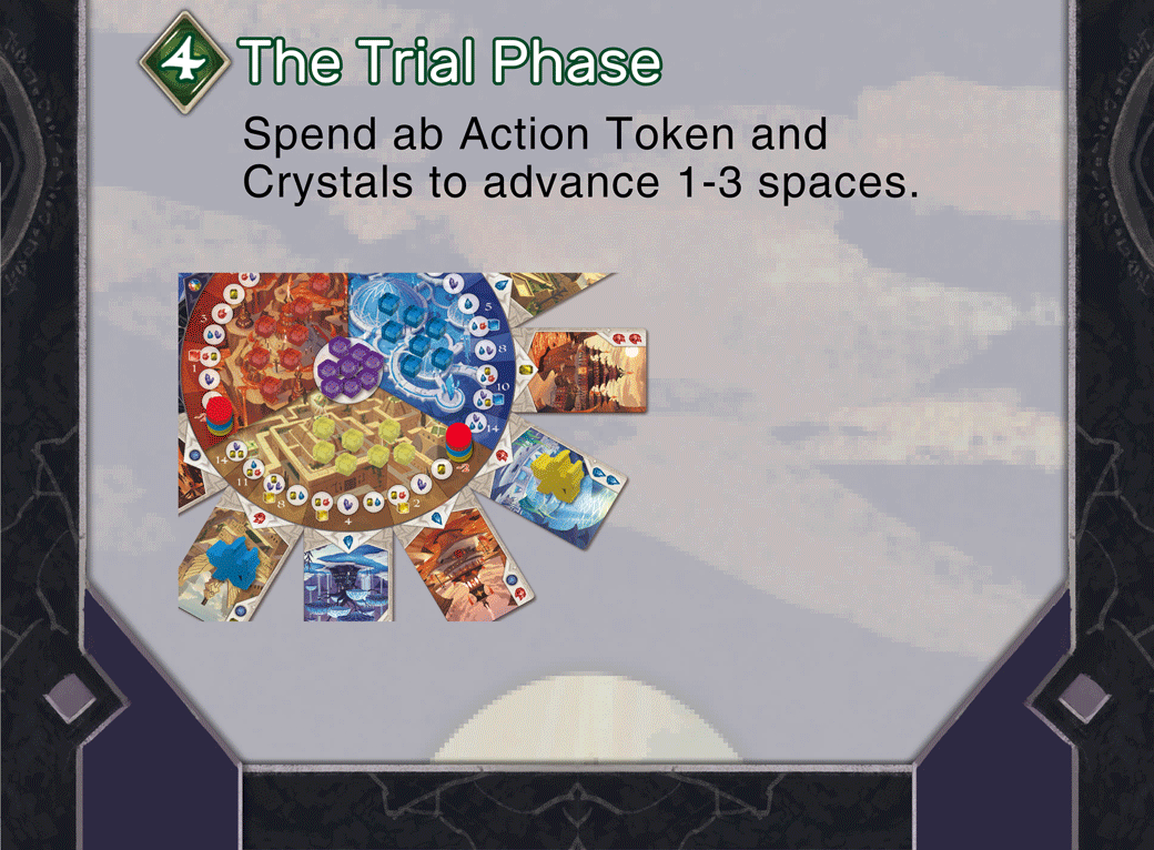 The game is played over 5 days (rounds) at most. At the end of the game, whoever has the highest Trial Points (VP) will be the winner.