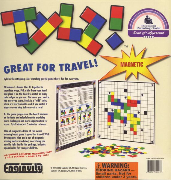 Includes 80 magnetic L-shaped tiles, gameboard, scoring markers, and instructions.