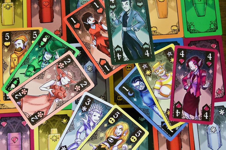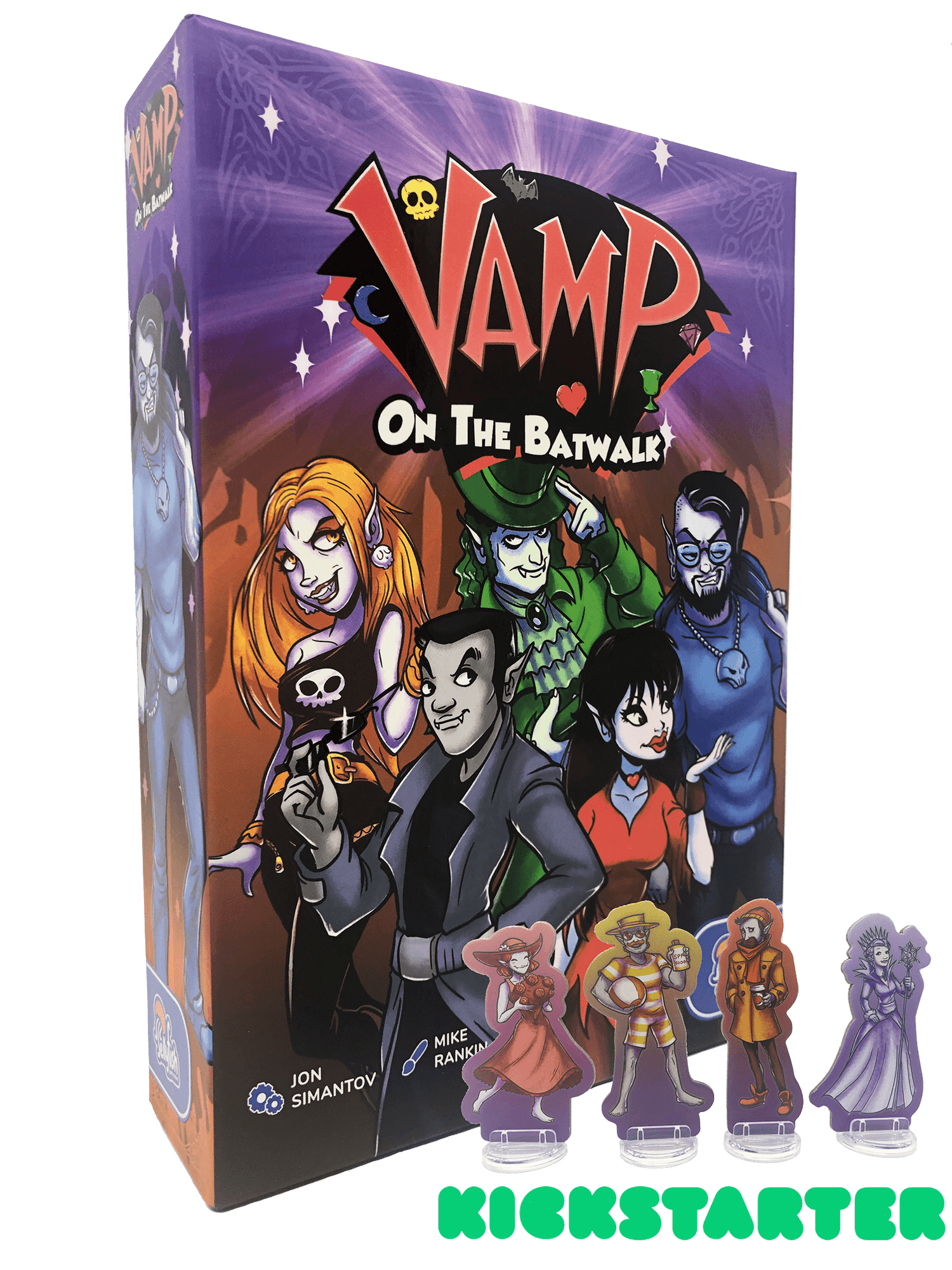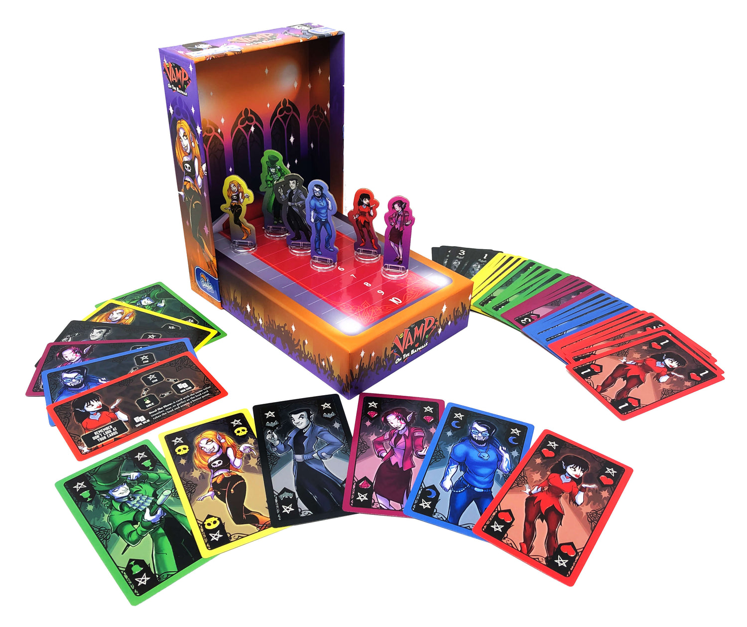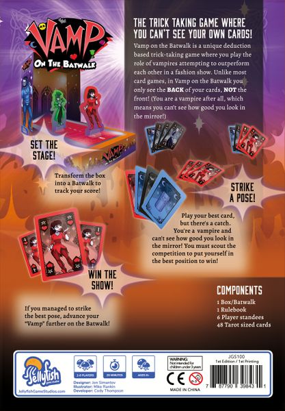 Vamp on the Batwalk is a unique deduction based trick-taking game where you play the role of "Vamps" attempting to outperform each other in a fashion show.
