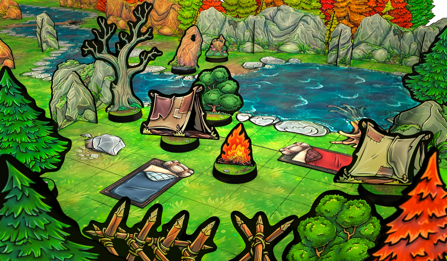 Over 55 Props and Item Tokens, Obstacles, Traps & hazards, Tents & bedrolls, and other Wilderness Dressing.