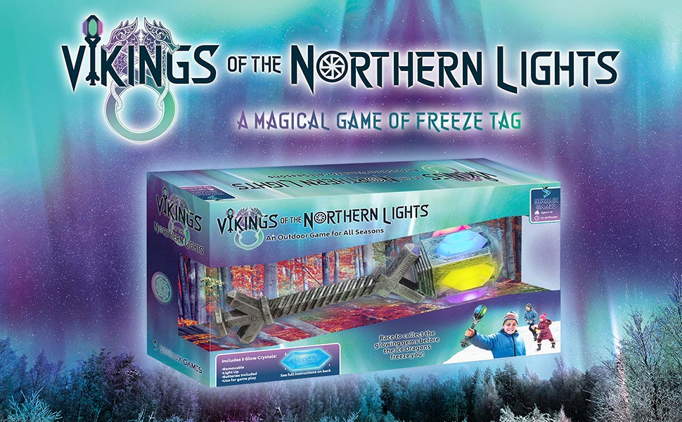 Vikings race to collect the glowing gems and return them to the scepter while Ice Dragons try to freeze tag all the players. Designed for both sun and snow, this group game inspires imagination and brings players together for active excitement. It also can be used for pretend play and costumes. Includes one medieval scepter and five glowing gems.