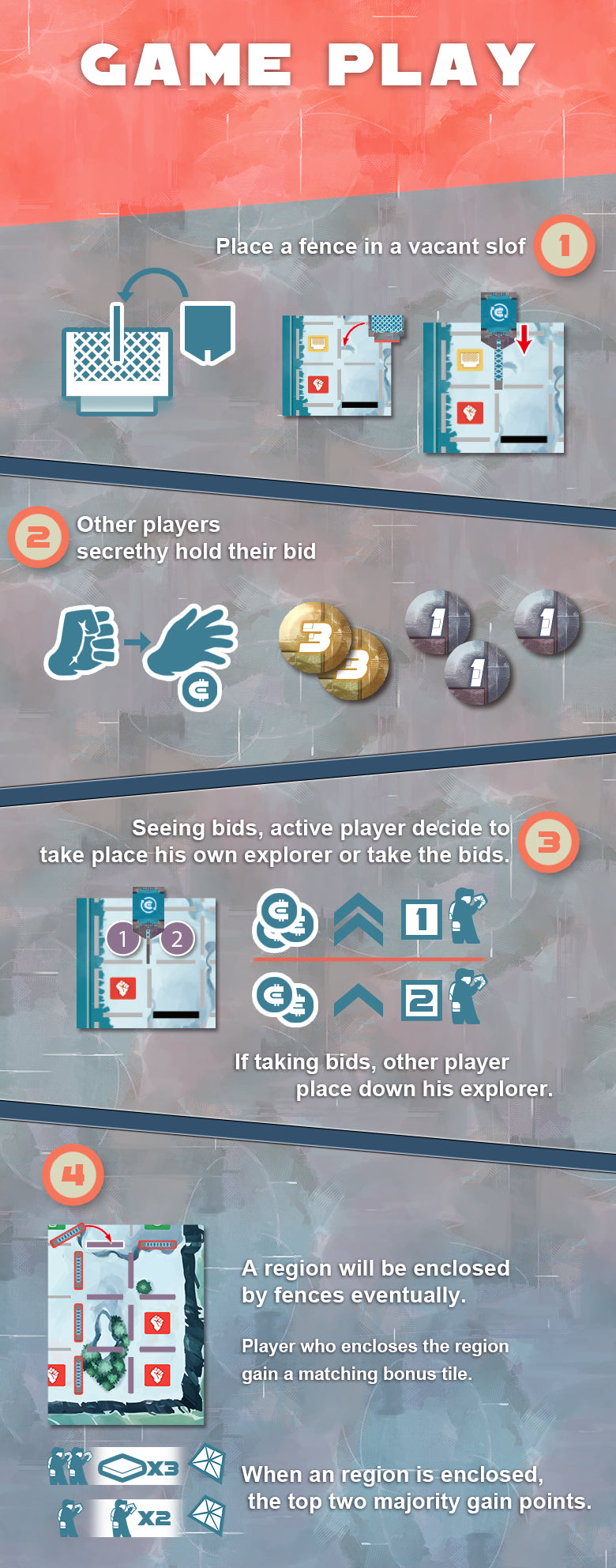 In World Splitters, you, as one of the factions, are re-designing the administrative divisions of the New World with other competing factions. You will split and bid for the land while your goal is to obtain the highest influence in the enclosed regions. With that ambition in mind, are you able to intertwine multiple interests and make irresistible offers?